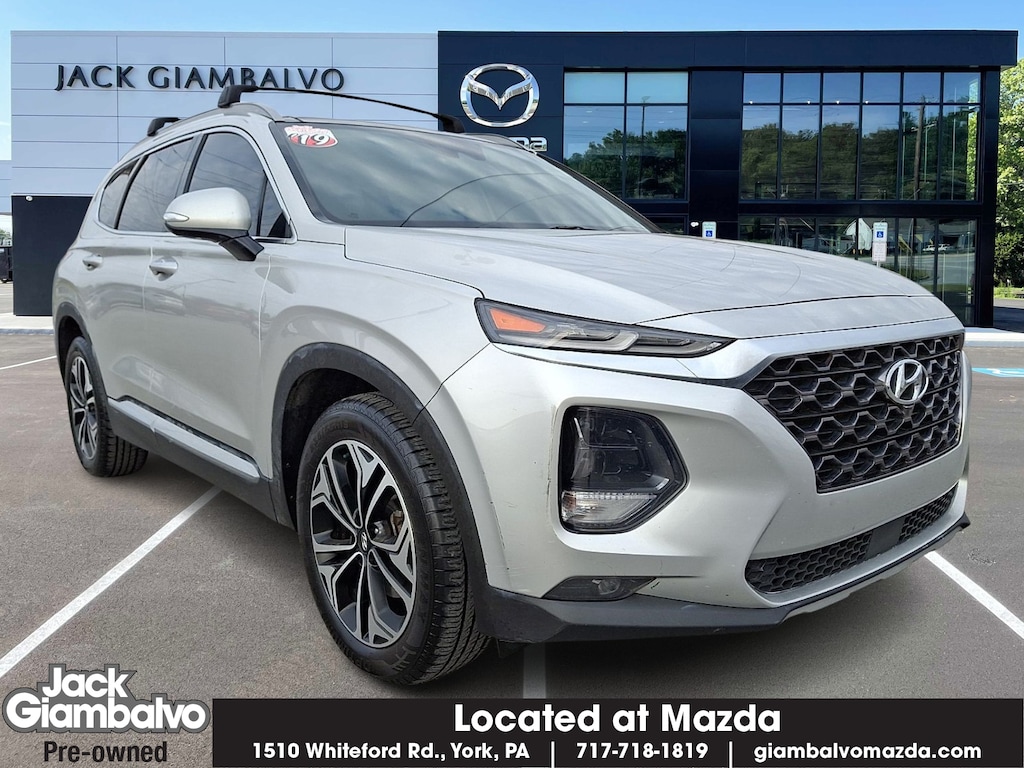 Recent Arrival! Symphony Silver 2019 Hyundai Santa Fe Ultimate AWD 8-Speed Automatic with SHIFTRONIC 2.0L Turbocharged AWD Black Leather.When you purchase a NEW Mazda at Jack Giambalvo Mazda your first two oil changes first two tire rotations and LIFETIME state inspections FREE (with paid emissions) are on us!Odometer is 687 miles below market average!